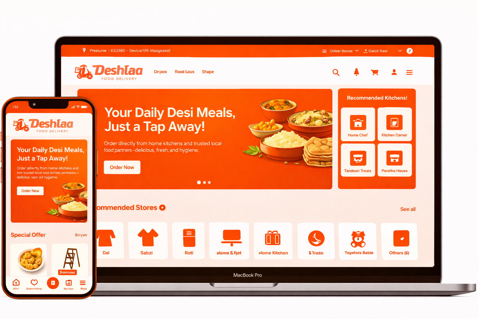 Deshlaa Food Delivery aapke liye lekar aata hai ghar ka bana, fresh aur desi khana – seedha trusted home kitchens aur local food partners se. Ab roz ka khana ho ya special desi dish, sab milega ek hi app par – tez, aasaan aur bharosemand.